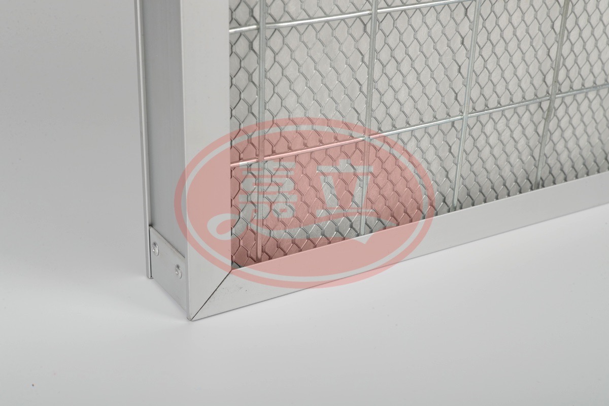 3)滤材外可以选择使用铝扩张网包覆滤材,可以有效支撑滤网承受大风量不易变形。