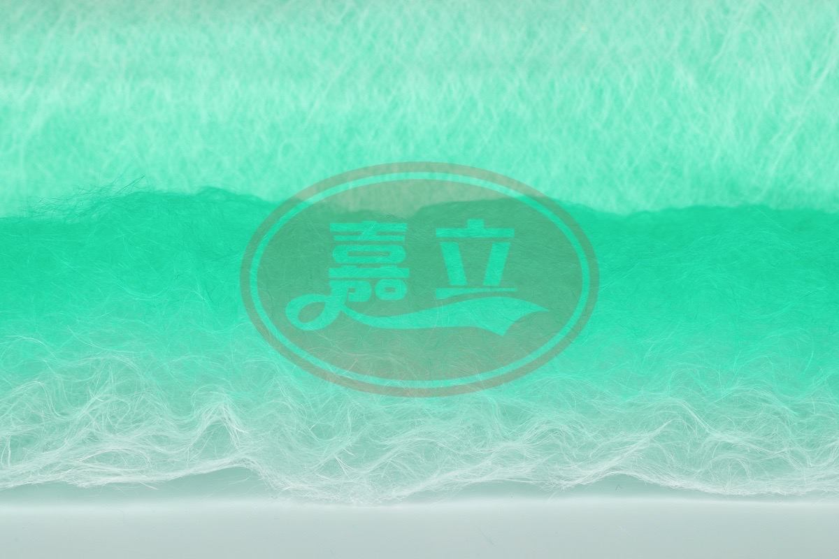 漆雾毡由高强度的连续单丝玻璃纤维组成,呈递增结构,捕捉率高、漆雾隔离效果好;压缩性能好,能保持其外型不变,其过滤纤维利于储存漆雾灰尘;漆雾毡滤料为绿白两色,绿色面为空气迎风面;具弹性、低压损,对漆雾有特佳的捕集效滤,漆雾毡阻燃符合DIN4102 F1耐温度强,可达到100%相对温度的耐温性; 耐高温达170。C 可切片、成卷供应。