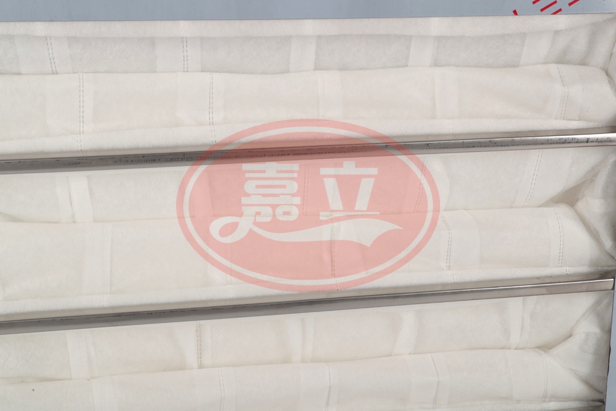 3、性能稳定。本公司生产袋式过滤器的化纤滤料上不带静电,过滤指标中也就没有因静电暂时增强的成分。只要滤料不