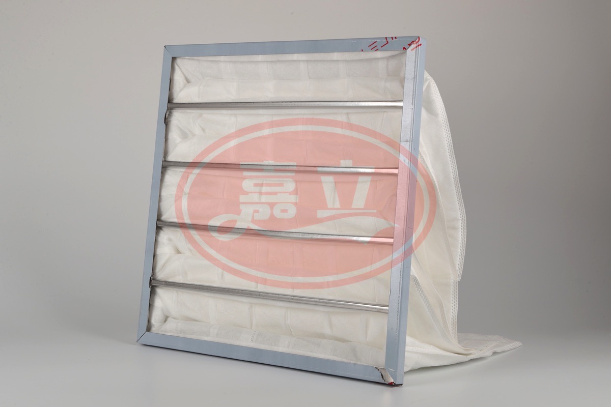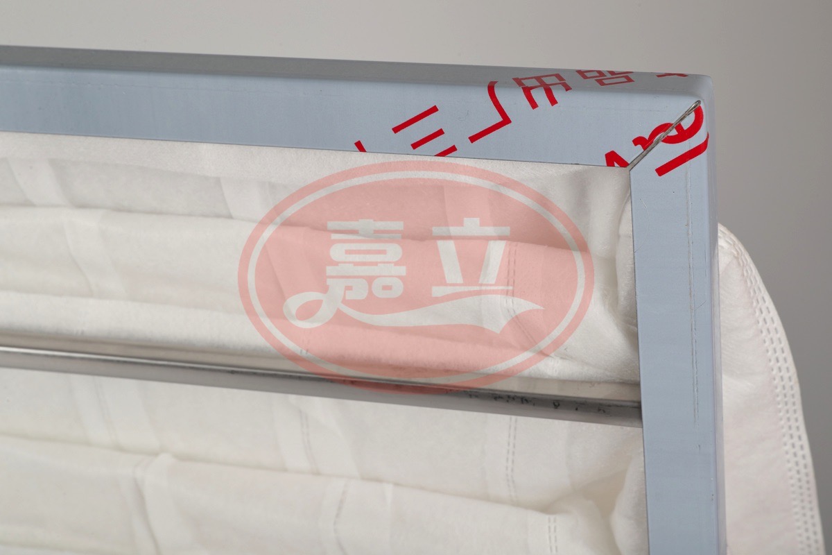 5、结构独特。外框采用专用铝型材或镀锌板框,便于完全回收、利用、优质U型铝合金压条,使滤袋结构阻力低,使用